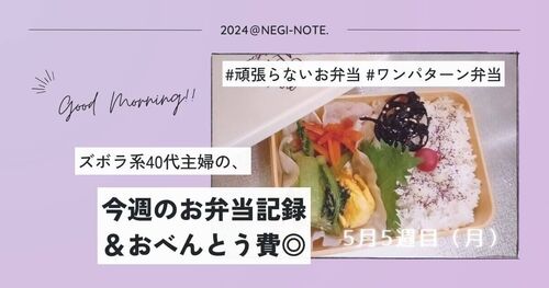 40代めんどくさがりズボラ主婦の頑張らないワンパターン弁当。1週間分の節約べんとう費の記録。