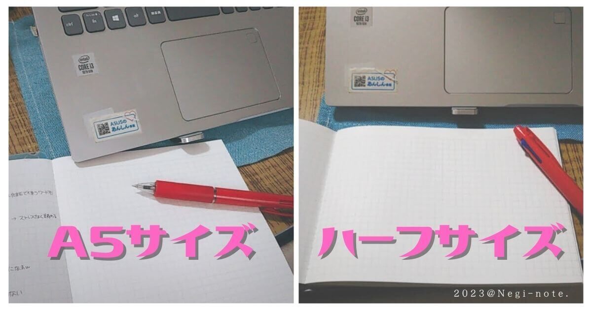 PC前のスペースで使いやすいハーフサイズのノートがあるんですねー!